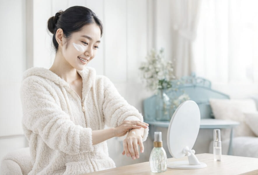 💡ワンポイント:寝室の加湿(湿度40〜60%)+水分摂取で、肌の自然修復力を最大化。